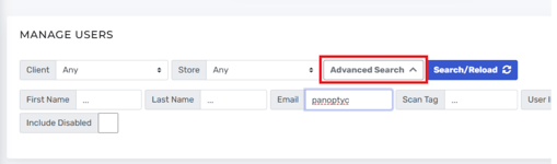 - Use the Name or Email field to search for the Panoptyc user