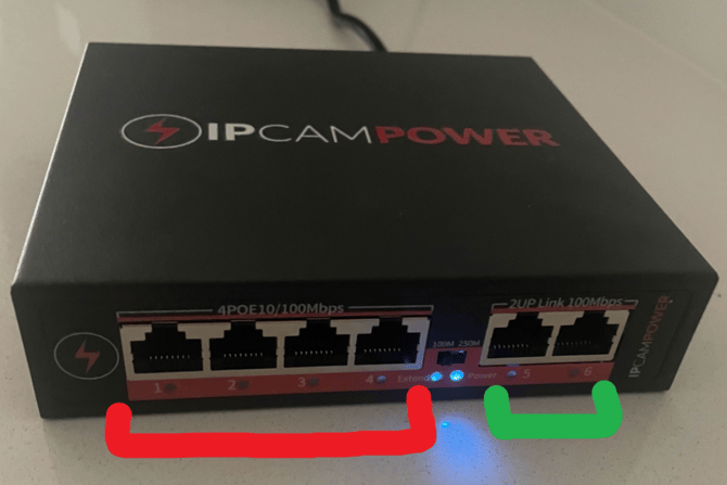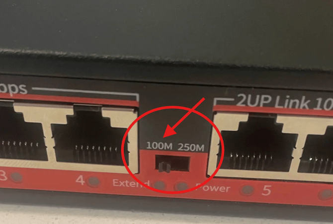 - IMPORTANT: Ensure the small lever on the ethernet switch is at the 100M setting before powering up the ethernet switch.